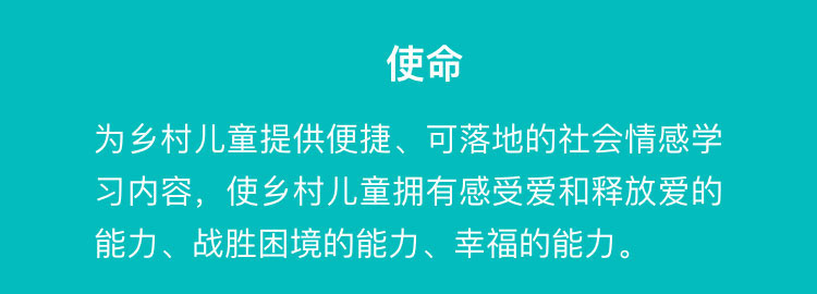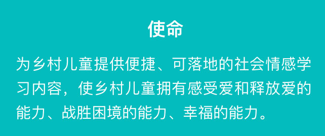 歌路营致力于为流动、留守以及乡村儿童提供便捷、可落地的社会情感学习内容,使儿童拥有感受爱和释放爱的能力、战胜困境的能力、幸福的能力,让每个儿童内心有力量,未来有希望。