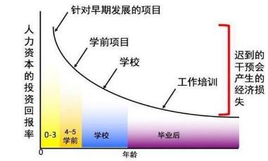全球跟踪研究显示,儿童早期发展阶段每投入 1 美元,将获得 4.1 - 9.2 美元的回报;在美国,这一回报在 7-16 美元之间。诺贝尔经济学奖获奖者赫克曼教授的研究显示,在儿童早期发展阶段的投资回报远高于在学校教育阶段和成人继续教育阶段的投资回报。