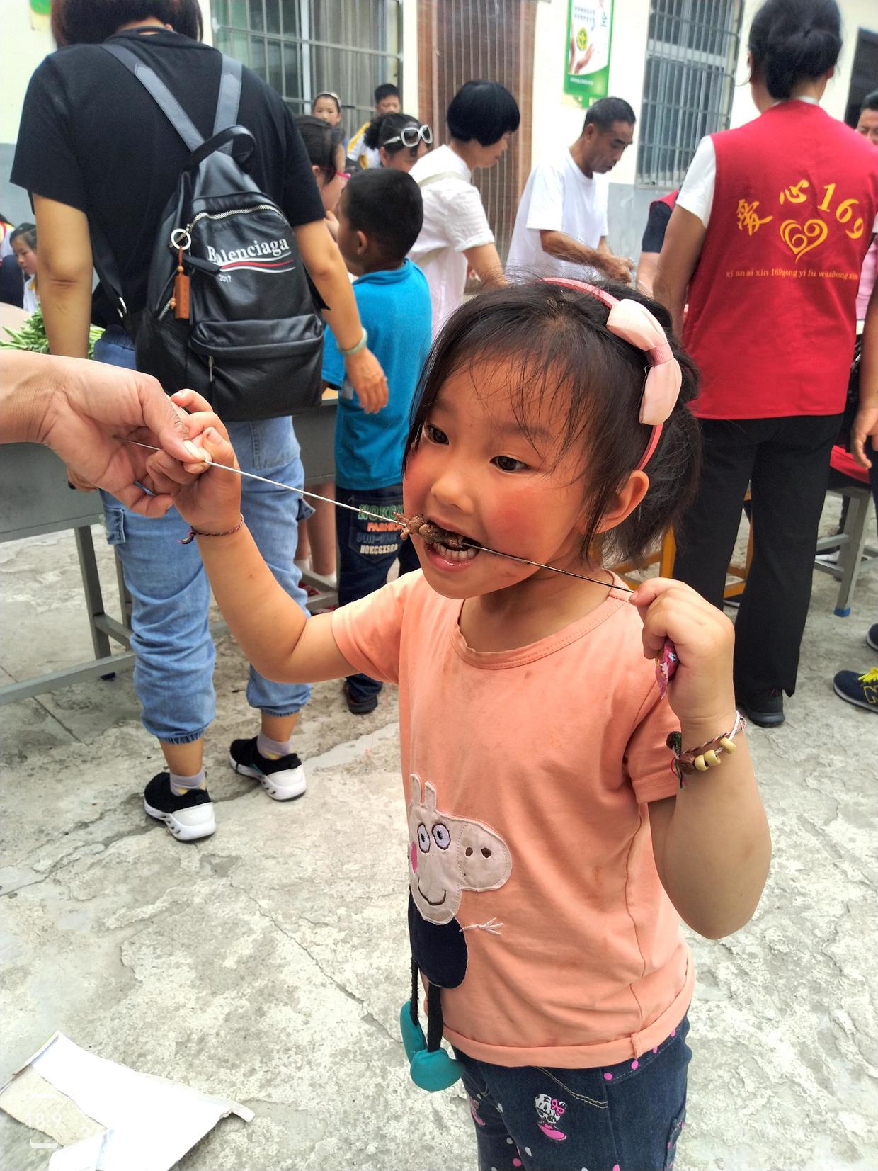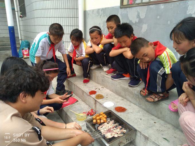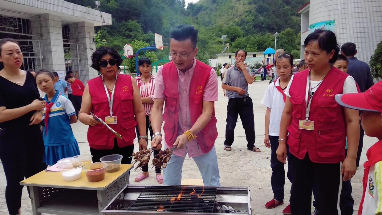 捐赠仪式结束后,志愿者们有的和孩子们一起打球、跳绳,有的和低年级的孩子游戏互动,有的为孩子们包饺子 ,而公益团队负责人杨涌则亲自点燃火炉为孩子们做起了烧烤,让孩子们品尝到从未吃过的烤肉、鱼豆腐。