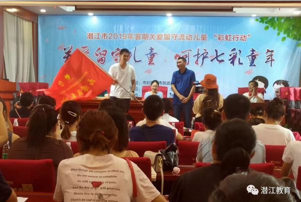 7月5日,潜江市教育系统120余名教育志愿者齐聚一堂,在园林办事处共同举办2019年暑期留守儿童陪伴彩虹行动启动仪式,市民政、教育、妇联、义工联各部门领导参加仪式。