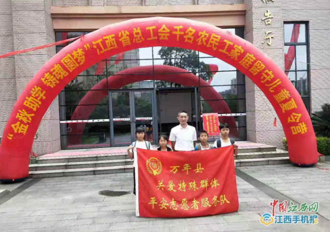 中国江西网/上饶头条客户端讯 通讯员胡敏报道:为贯彻落实江西省总工会2019年“金秋助学,铸魂圆梦”夏令营活动。万年县总工会近期经严格筛选,首期选派4名万年籍农民工家庭留守儿童赴南昌参加江西省总工会“金秋助学,铸魂圆梦”千名农民工家庭留守儿童夏令营活动。