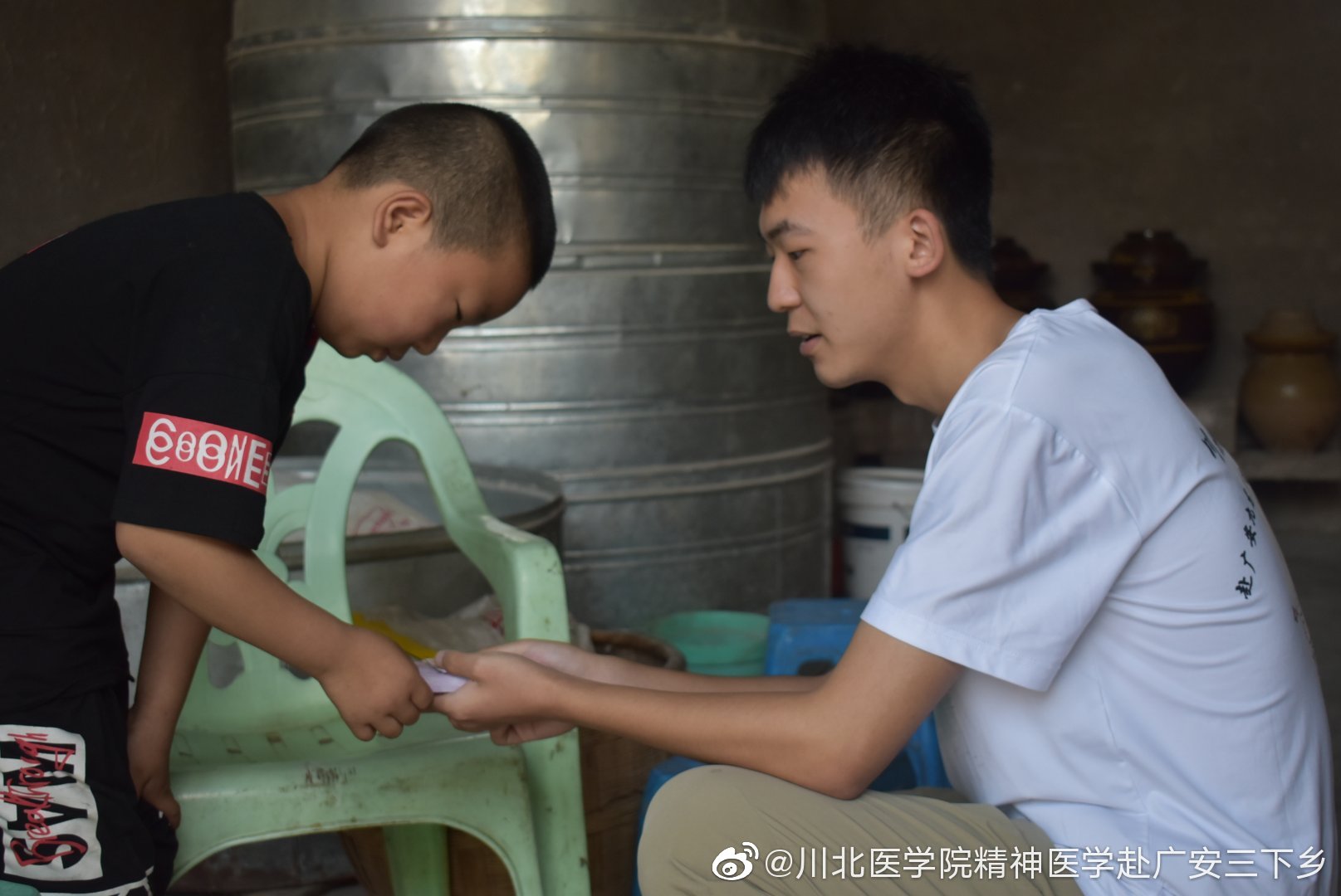 “以爱暖心,以情育人。”7月14日上午,精神医学赴广安三下乡队伍成员来到九龙镇八角村看望留守儿童。队伍分为两组,分别探望了两个留守儿童家庭。在冯春杰小朋友家中时,志愿者为大家表演了魔术,黄雪竹老师跟小杰进行了谈话,小朋友逐渐敞开心扉。冯春杰的父亲早年去世,母亲常年在外工作,过年才能回家。在离开前,实践队成员及带队老师留下了联系方式,表示以后能够随时提供帮助。@四川教育头条广安