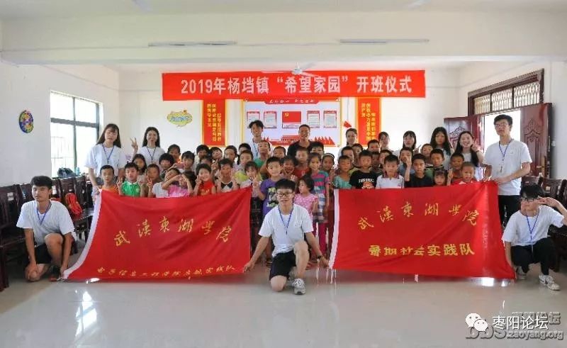 导语:这几年,武汉东湖学院的一群学子们每年暑假都作为志愿者实践小队,来到杨垱镇无偿开办一个留守儿童家园,当得知杨垱的留守儿童家园今年又开园了,7月13日,抱着对年轻大学生的佩服之情和对留守儿童的关爱之心,枣阳论坛部分新老版主一同前去探望。以下内容摘选自版主【真一逆天】和版主【金圣叹】的帖子。