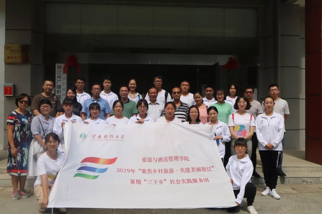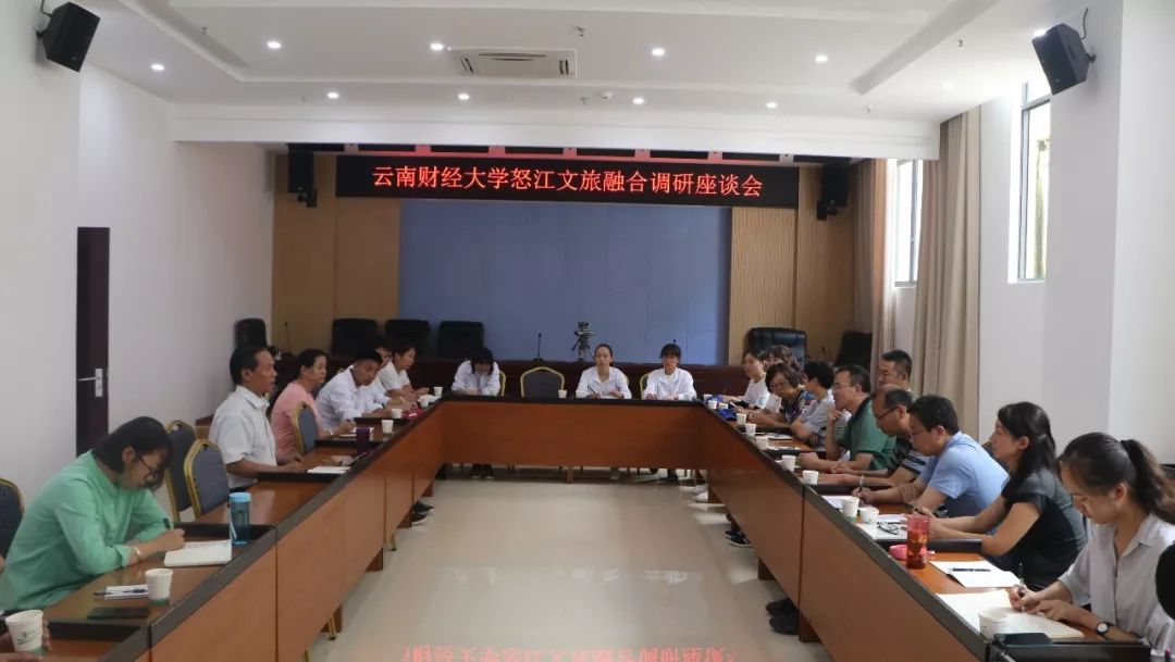 上午,"三下乡"实践队赴泸水市旅游文化局参加了"云南财经大学怒江文旅融合调研座谈会"。座谈会上泸水市旅游文化局杨副局长对怒江州的发展现状进行了详细的介绍。怒江山高谷深,美丽神秘,同时也是一块正待开发的璞玉,有很大的发展前景。在谈到怒江旅游发展过程中面临的问题时,他希望大家能够积极推荐优秀人才来规划怒江旅游发展,更深入的结合实际的为怒江旅游提供可行策划。云南财经大学旅游与酒店管理学院院长晏雄对怒江未来文旅发展提出了一些思考和想法,并表示在之后的发展过程中双方可以相互合作,结合学院特色,培养优秀人才,共建美丽怒江!党委书记张向英表示将带领此行下乡队伍积极走访调研,挖掘更多的宝贵数据,为怒江旅游的发展献策。