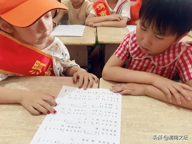 2019年7月21日早上7:40,常青艺术学校的老师和孩子在学校楼下集合,8点钟准时出发前往桥南镇留守儿 童中心。一路上,孩子们眉飞色舞、笑颜如花地讨论着自己准备的礼物,像一群叽叽喳喳的快乐小鸟。9点半左右 ,随着客车停稳,我们顺利到达目的地。留守儿童们看到熟悉的公益课堂老师,或热情、或腼腆的过来打招呼。 老师们安排所有的孩子们坐好后,一节生动有趣的公益课堂又要开始了。教声乐的吕老师在代老师的伴奏下先教 大家唱了《歌声与微笑》,其他公益课堂老师也在忙着:有的擦黑板、有的挂横幅、有的维持秩序、有的在倾听 孩子的需求,有的在给孩子们分发乐谱.......吕老师教的仔细,孩子们学的认真,代老师不厌其烦的一遍遍的伴奏 。孩子们学会之后,代老师又试着升了一个调来伴奏,在吕老师的引领下,歌声更嘹亮、更悦耳了。接着,我们 复习了上次公益课堂学习的《爱是烛光,爱是太阳》,真希望像歌曲里唱的那样-------让爱把孩子们 的梦想照亮! 常青艺术学校的孩子演奏了《茉莉花》,让大家沉浸在音乐中,如醉如痴。桥南留守儿童中心的姊妹花寒梅、寒 冰分别演奏了大家耳熟能详《荷塘月色》、《让我们荡起双桨》、《卖报歌》,老师和孩子们都不由跟着旋律唱 起来了。最后,我们学习了《我和我的祖国》。这首唱歌出了大家对祖国的热爱和祝福,唱出了浓浓的自豪感和 归属感。吕老师又给孩子们进行分组,常青艺术学校的孩子们和桥南留守儿童中心的孩子们之间开展了别开生面 的赛歌活动。美妙的歌声与热烈的掌声飞出窗外,响彻云霄。下课的时候,还有人在禁不住小声地哼唱。