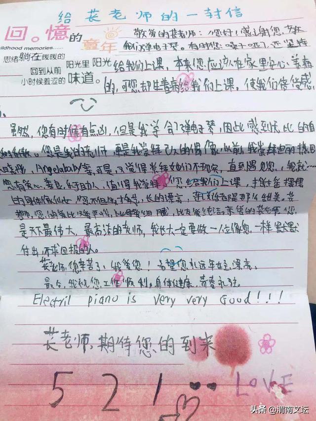 在离别的车上,苌老师惊喜的在自己的包包里发现了留守儿童写给她的感谢信。孩子们用最朴实的方式,最 朴素的语言表达着对老师的肯定、热爱和崇拜。付出爱、收获爱、传递爱-------这才是教育的力量!这种力量也感 染着每一位公益课堂老师。