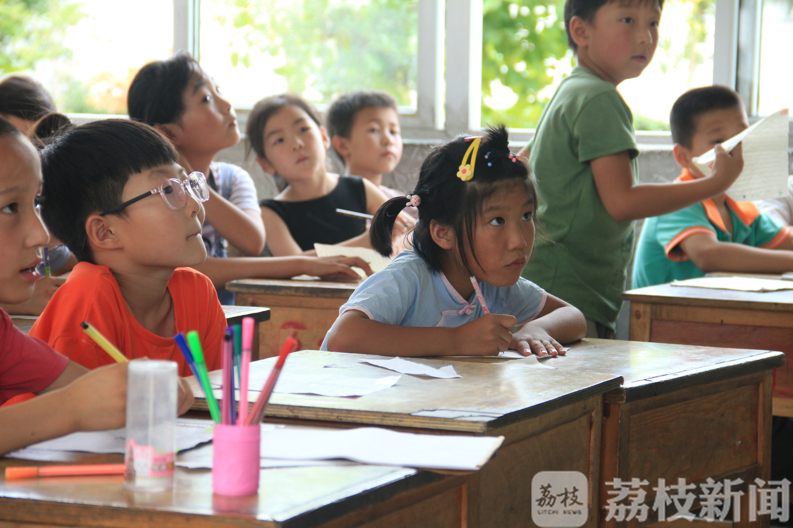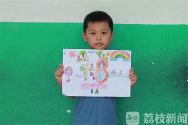 “姐姐,这是我最喜欢的绘画课!”7月24日,在邳州市邳城镇镇南小学,三年级的王鑫玉小朋友拿着自己刚刚完成的绘画作品,高兴地对在这里支教的矿大设计学院的志愿者熊梦婷说。