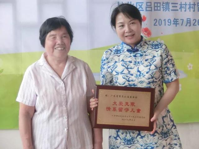 从化区关工委常务副主任陈长卿女士回赠牌匾给广东省慈泉公益基金会