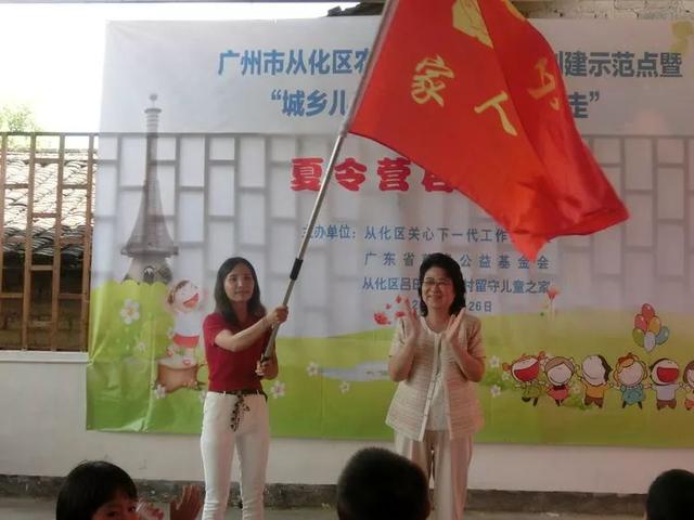 仪式上,广州市关工委执行主任孔少琼还为留守儿童之家夏令营授旗。