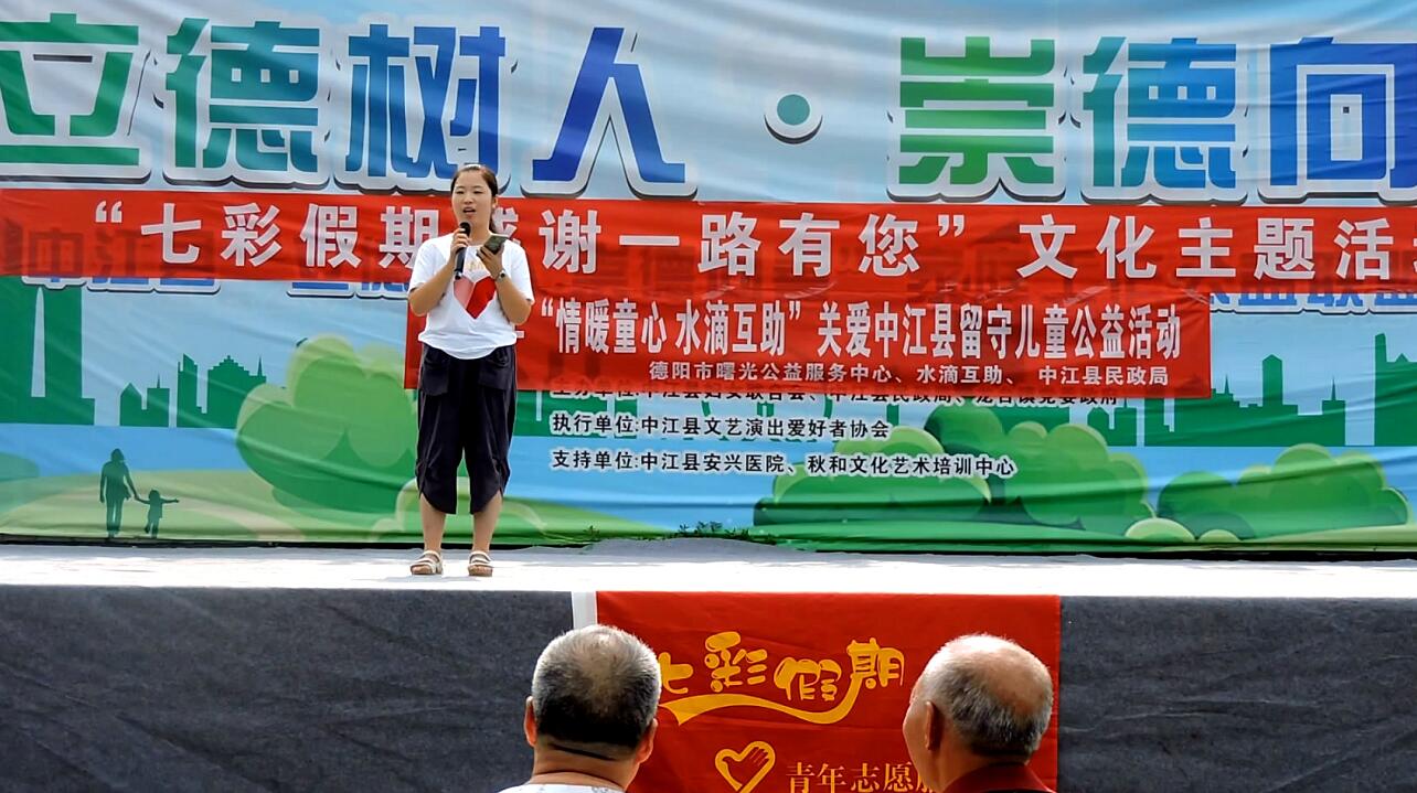 赶巧不如碰巧,今天()德阳市曙光公益服务中心受邀参与了“七彩假期,感谢一路有您”——关爱留守儿童暑期支教活动主题汇演及开展了2019年“情暖童心 水滴互助”关爱中江县留守儿童公益活动。