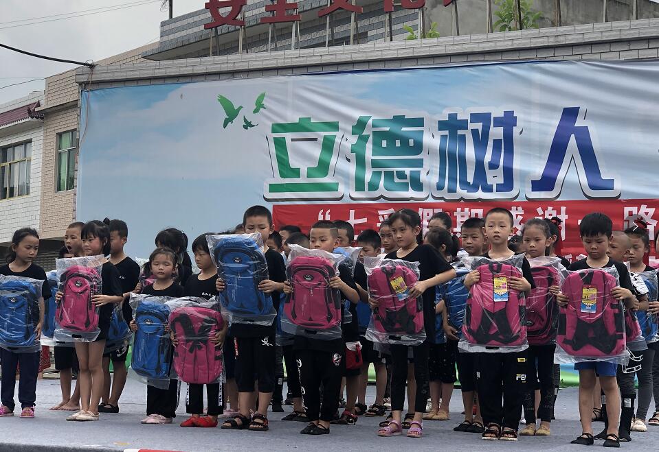 紧接着德阳市曙光公益服务中心为36名留守儿童送去了书包,愿孩子们在以后的学习中更加努力。