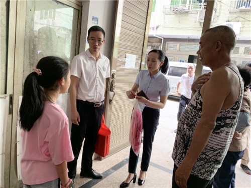 7月31日上午,龙湾区副局长周兆弟、龙湾团区委副书记邵赛慧等一行深入走访了辖区内3名留守儿童,为他们送去慰问金、学习及生活用品,并进行了"一对一"访谈。走访人员及社工通过与留守儿童的家长或代理监护人面对面,交流儿童们的学习、生活和健康状况,近距离的接触"小候鸟"的内心,倾听他们的心声,希望让每一名"小候鸟"都能感受到来自社会和党政部门的关爱。